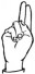 На ћирилици написано ИРИНА ДОНЧИЋ састоји се из 11 слова [?]. Исписано ћириличном једноручном азбуком за глувонеме: